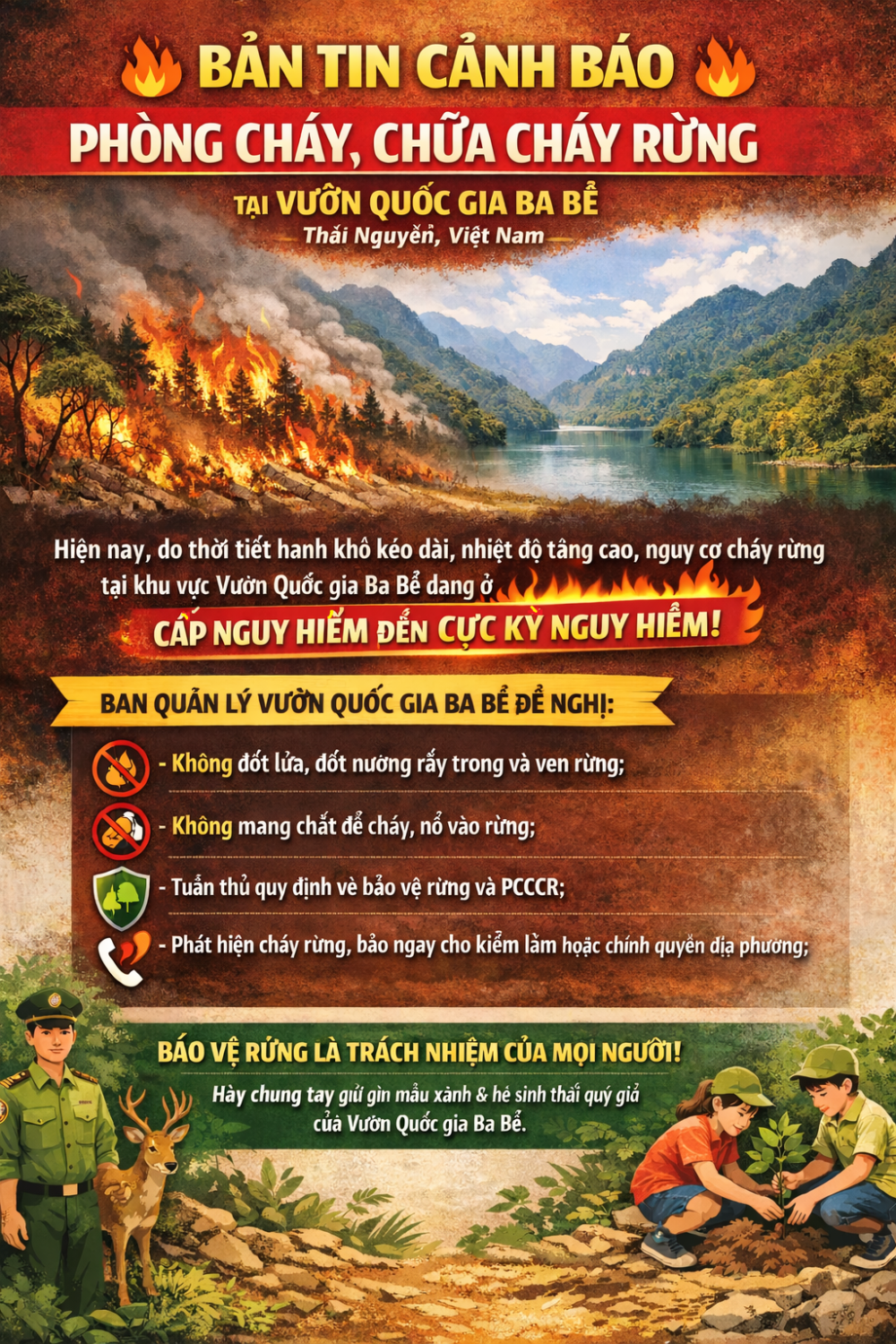 - THÔNG BÁO CÔNG KHAI ĐƯỜNG DÂY NÓNG TIẾP NHẬN THÔNG TIN, PHẢN ÁNH VỀ NHỮNG HÀNH VI NHŨNG NHIỄU, GÂY PHIỀN HÀ TRONG HOẠT ĐỘNG CÔNG VỤ CỦA BAN QUẢN LÝ VƯỜN QUỐC GIA BA BỂ