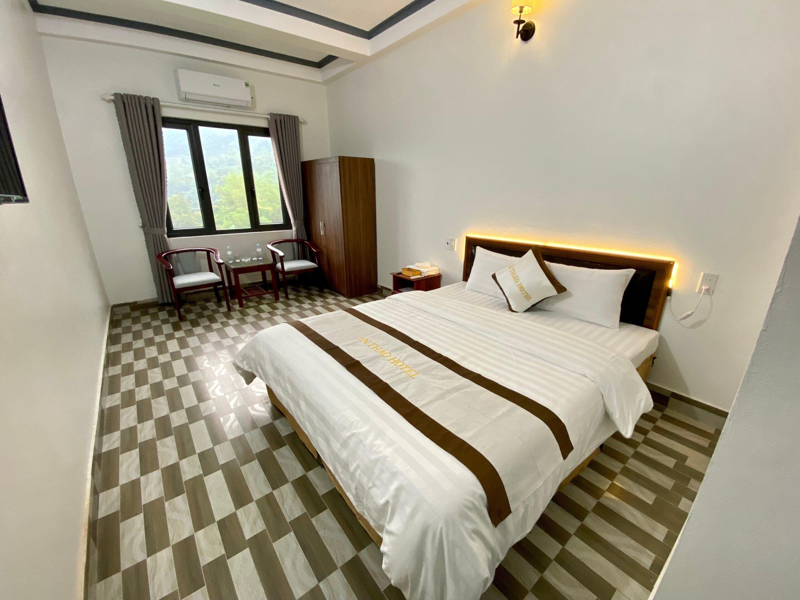 Khách sạn An Thảo chú trọng vào việc tạo ra không gian ấm cúng và thoải mái cho du khách. Các phòng nghỉ được thiết kế rộng rãi, hiện đại và đầy đủ tiện nghi, đồng thời đều có cửa sổ hoặc ban công hướng ra hồ để du khách có thể thưởng thức khung cảnh tuyệt đẹp ngay từ chính không gian riêng của mình.